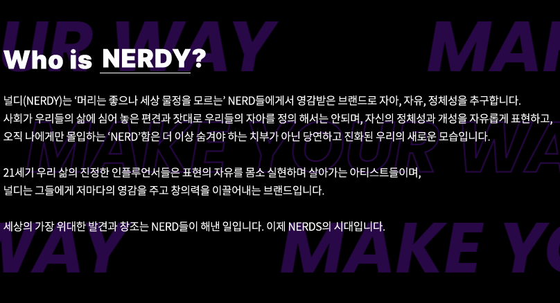 우리나라에서 많은 젊은 친구들이 입고 다니는 NERDY라는 패션브랜드가 있습니다.